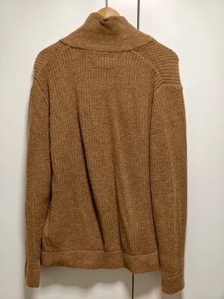 Chaquetón de punto para hombre en color marrón. Diseño con cierre de botones de madera. - Diseño de punto grueso. - Cierre con cuernos de madera y cordón. - Bolsillos delanteros.