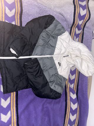 Chaquetón de la marca Nike con un diseño moderno y bloques de color. - Diseño con paneles en negro, gris y blanco. - Capucha integrada.