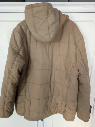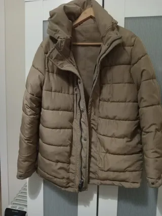 Chaquetón acolchado de color beige, perfecto para el frío. - Cierre de cremallera y botones. - Capucha integrada. - Bolsillos laterales.