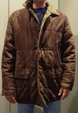Chaquetón de ante con un diseño clásico y elegante. - Cierre de cremallera. - Cuello alto. - Dos botones en la parte frontal. - Bolsillos laterales con solapa. - Excelente calidad - En perfecto estado - Muy calentito