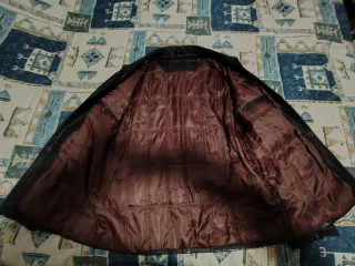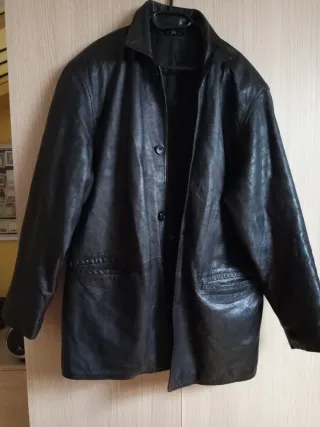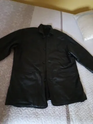 Se vende chaquetón o 3/4 de hombre de piel negra, el exterior es piel de bobino 100%, la composición del forro interior es sintético, talla XL, medida de ancho 58 cm y de longitud 80 cm, en prefecto estado de conservación muy poco uso, con dos sistema de abrochado, botones y/o cremallera, ver fotografías,