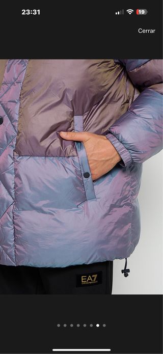 Chaquetón de Emporio Armani con un diseño llamativo y moderno. - Acabado iridiscente que cambia de color. - Bolsillos frontales con cierre de botón.