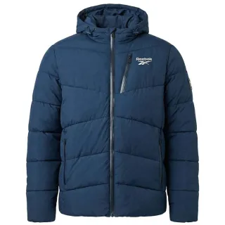 Chaqueta acolchada Reebok de color azul, con un diseño moderno y funcional. - Cierre de cremallera frontal. - Bolsillo con cremallera en el pecho. - Capucha ajustable. - Bolsillos laterales con cremallera.