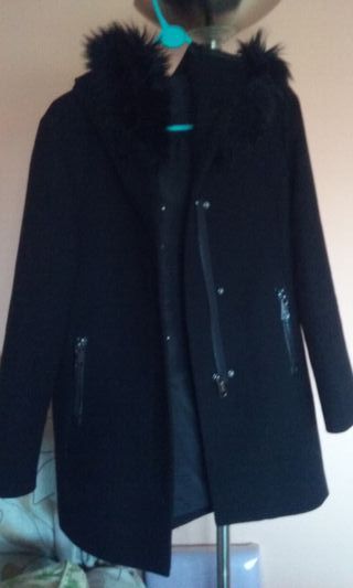 BONITO CHAQUETÓN PRÁCTICAMENTE NUEVO, DE PAÑO, CON CAPUCHA DECORADA CON PELO. CIERRE FRONTAL Y BOLSILLOS CERRADOS CON CREMALLERAS. CALENTITO. TALLA 42 - Bolsillos laterales con cremallera. - Capucha con acabado de pelo sintético.