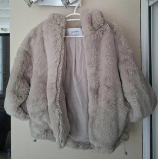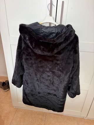Elegante chaquetón de pelo sintético con capucha. Forrado muy abrigadito en perfecto estado talla 44 pero vale para menos talla y más es amplio . - Tacto suave y agradable. - Diseño moderno y cálido.