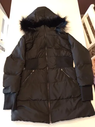 Chaquetón acolchado con capucha y pelo sintético. - Cierre de cremallera. - Bolsillos delanteros con solapa. - Bolsillo con cremallera en manga. - Cordones ajustables en capucha. - Abriga bastante - Alguna mancha de uso lavable