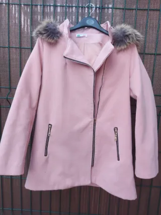 Elegante chaquetón en color rosa, perfecto para añadir un toque de estilo a tu armario. - Diseño con capucha. - Detalle de pelo sintético en la capucha. - Cremallera frontal asimétrica. - Bolsillos laterales con cremallera.