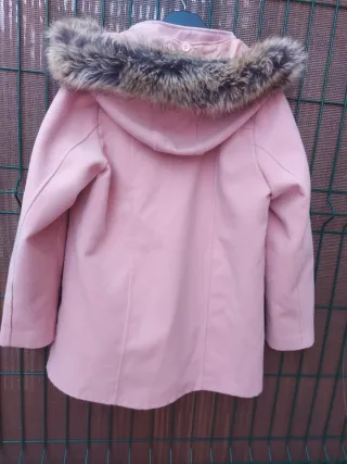 Chaquetón de color rosa con capucha y forro interior. - Cierre de cremallera. - Bolsillos con cremallera. - Cintura ajustable con cordón. - Puños con detalle de pelo.
