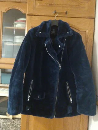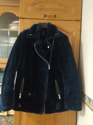 Chaquetón azul y negro talla M, pelo y drapeado