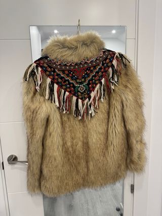 Chaquetón Zara Pelo Boho Bordado Flecos