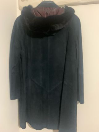 Elegante chaquetón de piel girada para mujer sintético. - Diseño con cuello y puños de pelo sintético. - Cierre de botones. - Dos bolsillos frontales. Las medidas son: De sisa a sisa 60 CMS. De hombro a hombro 46 CMS. De manga 58 CMS De hombro hasta abajo 85 CMS. Perfecto estado. Limpia y sin roces.Hago envíos.