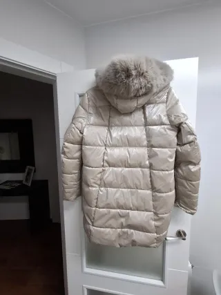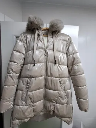 Elegante chaquetón de color beige, perfecto para mantenerte abrigado. - Cuello con detalle de pelo sintético. - Cierre de cremallera frontal. - Bolsillos laterales con cremallera. - Diseño acolchado.
