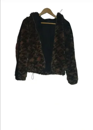 Chaquetón de pelo muy suave y calentito. Ideal para el frío. - Cierre de cremallera. - Capucha con cordones. - Puños y bajo elásticos. No tiene ningún desperfecto. No está usado.