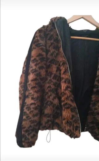 Chaquetón de pelo sintético de calidad, muy suave. Estampado leopardo, marrón como la última foto, estampado calidad. Cuello solapa, bolsillos y cierre de cremallera. Marca de El Corte Ingles. Sin estrenar. No hago envíos.