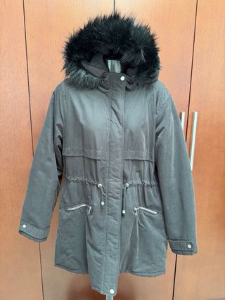 Chaquetón acolchado con forro interior de pelo. - Capucha con cordones ajustables. - Cierre de cremallera. - Dos bolsillos laterales con cremallera y tirador. - Sin estrenar.