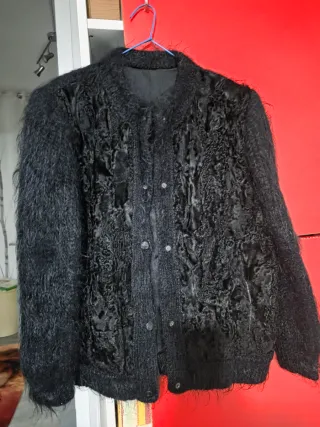 Elegante chaquetón de pelo sintético en color negro. Se encuentra en perfecto estado. - Tacto suave y agradable. - Diseño moderno y abrigado.