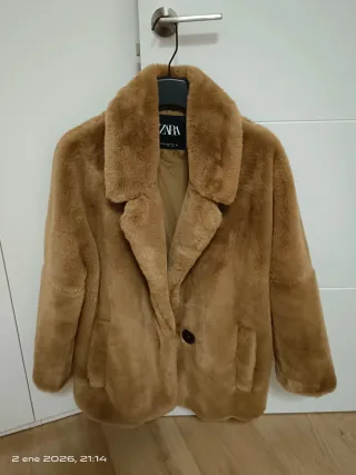 Chaquetón pelo Zara Beige Talla S