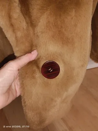Chaquetón de pelo sintético con un diseño moderno. - Año 2021, muy pocas puestas, cómo nuevo. - De Piel Ecológica. Talla M. - Tacto muy muy suave. - Botonadura de broches muy bonitos. - Y muy calentito.