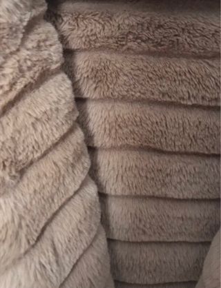 Elegante chaquetón de pelo sintético con capucha. Se ha usado en un par de ocasiones. - Tacto muy suave. - Cierre con botón. - Puños y bajo con acabado en pelo.