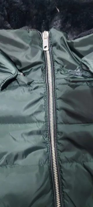 Chaqueta de la marca Zara en color verde. Cuenta con un diseño acolchado y detalles modernos. 🎁 Regalo bufanda, 2 dvd cine ( de las que yo regale) y funda mòvil. - Capucha con pelo sintético. - Cierre de cremallera frontal. - Bolsillos laterales con cremallera. - capucha sin usar. - Chaquetòn poco uso. Se me quedò estrecho y por eso lo vendo, por espacio, y pràcticamente nuevo. - Estiliza. - Medidas ùltima foto, con el chaquetòn abrochado.