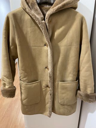 chaqueton de ante forrado en pelo sintetico imitando vison. puños reversibles. talla 38/40