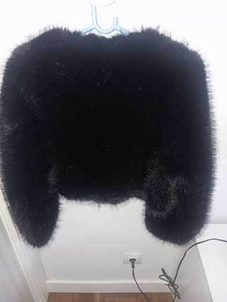 Elegante chaquetón negro con un tacto suave y cálido, imitando la textura del visón. - Diseño corto y moderno. - Manga larga. - Cierre frontal con corchetes( ver fotos)