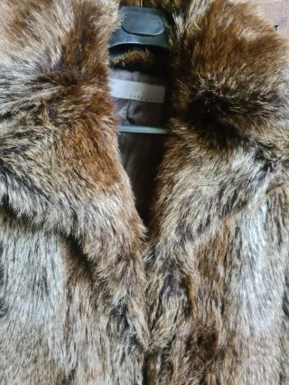 Chaquetón largo/ abrigo corto ( 84cm de largo) de pelo sintético en tonos marrónes de Zara Talla S. Nuevo sin estrenar con la etiqueta, en perfecto estado. Muy elegante y cálido, corte recto con cuello amplio. Cierre con 2 corchetes invisibles Estiloso y juvenil