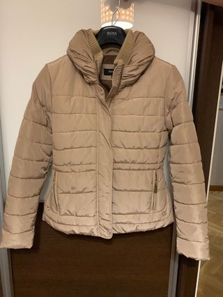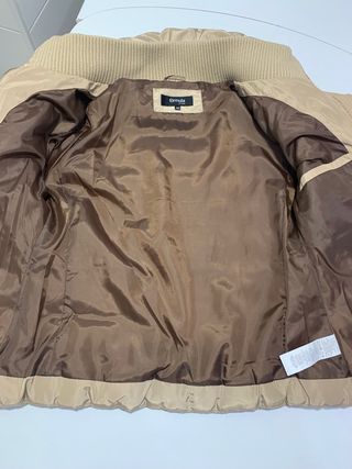 Abrigo o chaqueton color marrón claro, guateado, muy nuevo, casi sin uso. No tiene roces ni enganchones. Talla 8 de niño. De Benetton.