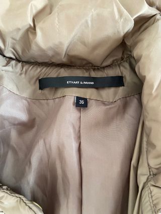 Chaqueta o chaquetón corto, color tostado, beig, de la marca Formula Joven del Corte ingles. La talla pone 40 en la etiqueta, pero en realidad da poca talla y es más bien una 38. Ver medidas en las fotos Doble cierre con cremallera y corchetes. Un bolsillo interior y dos exteriores con cremallera. Se ha usado muy pocas veces. La tela está muy bien excepto una pequeña manchita en la manga izquierda. Ver foto