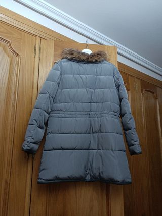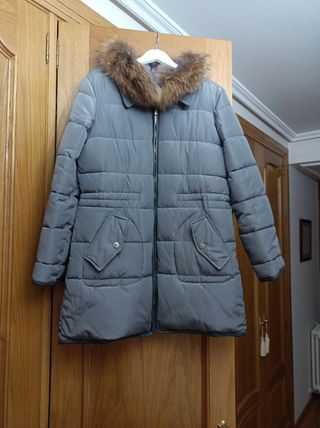 LO RETIRO FIN DE FEBRERO. Tiene 4 bolsillos delante y otros 4 en el interior. Se abre con cremallera y también tiene velcro. El gorro es desmontable y el pelo que rodea al gorro también. Ancho de pecho (de lado a lado no contorno) 55 cms. Abriga mucho. Está nuevo.