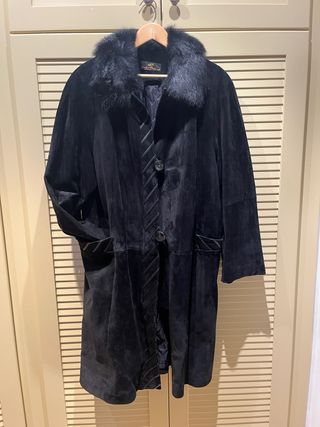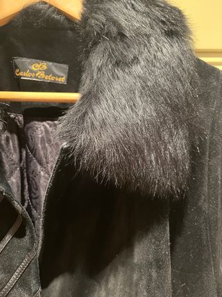 Chaquetón negro Roberto Verino, 70% lana, cuello pelo natural (desmontable)