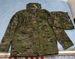 Conjunto de chaqueton y pantalón de intemperie con tecnología Gore-Tex. - Patrón de camuflaje boscoso pixelado. - Incluye chaqueton y pantalón. - Incluye forro polar interior - El forro polar se puede quitar - Está completamente nuevo no tiene ni un uso - Es el intemperie bueno