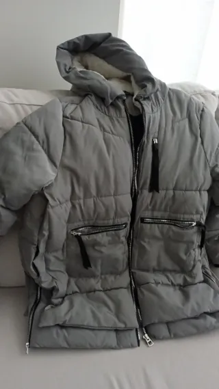 Chaquetón acolchado con acabado brillante. - Diseño moderno y llamativo. - Cremallera frontal. - Capucha integrada y la puedes quitar bolsillos por dentro y por fuera no hace falta ponerte sudadera con una camisa a unos. cero grados o caso asin vas calentito