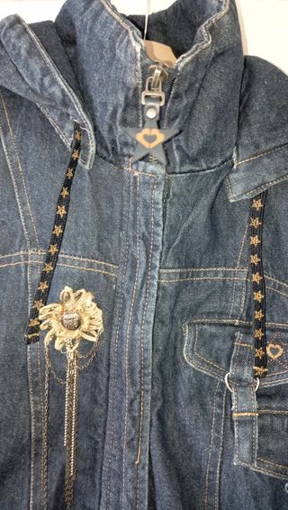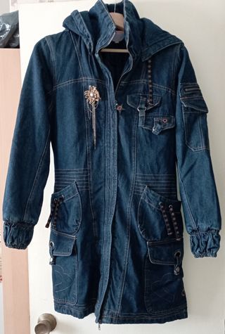 Chaquetón largo vaquero de cuello alto con cremallera (calentito) en buen estado con varios bolsillos de diferentes tamaños. Poco uso