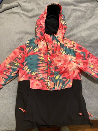 Chaquetón de nieve con un diseño vibrante y llamativo. - 10k Waterproof. 3M - Estampado en tonos rosas, amarillos y verdes. Parte inferior en color negro - Cremallera lateral para mayor comodidad al quitar y poner - Goma de ajuste a la cadera para que no entre nieve - Bolsillo frontal grande, con compartimento interior con cremallera para mayor seguridad - Dos bolsillo laterales INDEPENDIENTES del bolsillo central grande - Bolsillo para forfait en el brazo *Lo vendo porque se me ha quedado pequeño 🥺