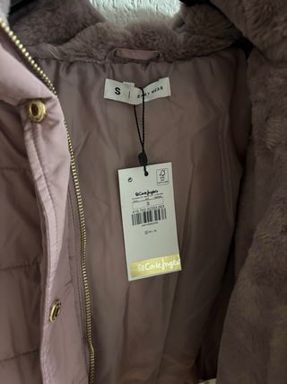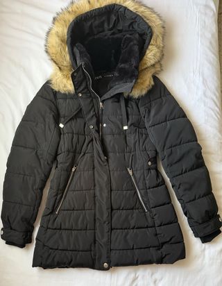 Elegante chaquetón de Zara, perfecto para el frío. - Diseño acolchado. - Cintura ajustable. - Capucha con pelo ( pelo desmontable ) - Cremalleras decorativas