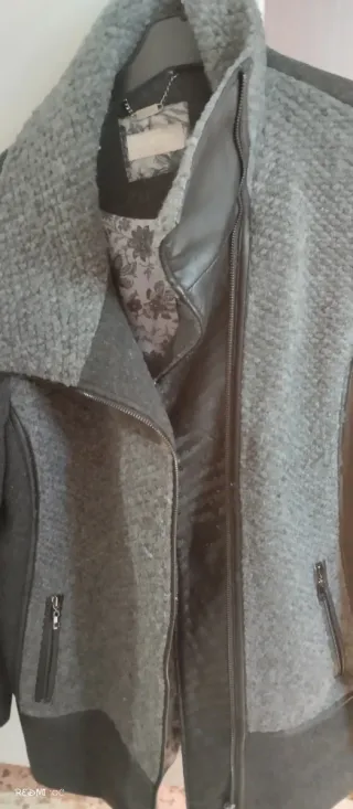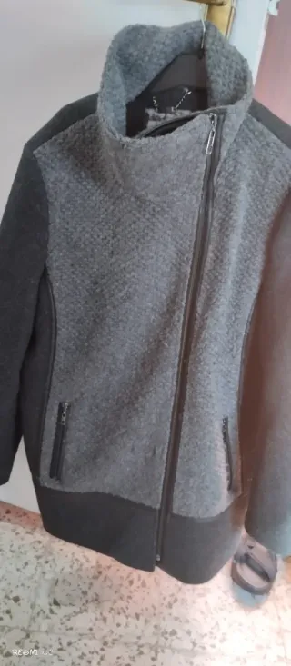 Chaquetón con un diseño moderno y detalles únicos. - Cremallera frontal asimétrica. - Cuello alto con textura. - Bolsillos laterales con cremallera. - Paneles de diferentes texturas.