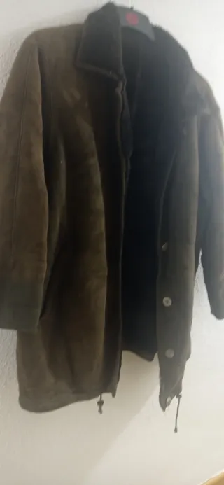Chaquetón largo de mutón color negro con forro, muy calentito. Talla aproximada L, no tiene etiqueta. Poco usado.