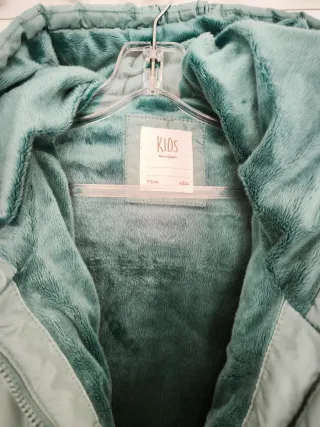 Abrigo acolchado de niña, talla 172cm (14 años) en un bonito tono verde turquesa. Totalmente forrado de pelito, muy abrigado. - Diseño acolchado con líneas curvas. - Capucha integrada. - Bolsillos laterales.