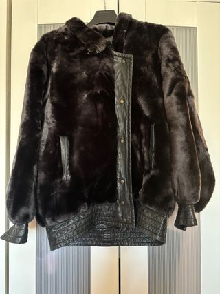 Chaquetón de piel marrón, ideal para el frío y a estrenar. - Supercálida, forrada de pelo - Diseño elegante con cuello de pelo. - Cierre de doble botonadura. - Puños con detalle de pelo. - Bolsillos frontales.