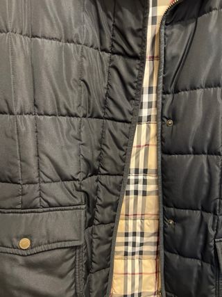 Elegante chaquetón de la marca Burberrys, en un llamativo color rojo. - Diseño acolchado. - Forro interior con el clásico estampado Nova Check. - Cierre de botones. - Cuello camisero.