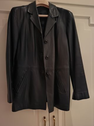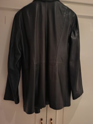 Elegante chaquetón de piel auténtica, perfecto para añadir un toque sofisticado a tu armario. - Diseño clásico con cuello solapa. - Cierre frontal con botones. - Dos bolsillos delanteros. - Confección en piel de alta calidad.
