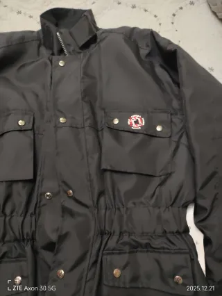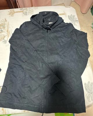 Chaquetón negro con un diseño moderno y práctico. - Cierre de cremallera con solapa de botones. - Múltiples bolsillos frontales con solapa. - Cintura ajustada. - Cuello alto. - Interior acolchado con dos grandes bolsillos, muy cómoda para frío y viento. Perfecta para usar como chaqueta de trabajo, para moto, senderismo, etc. Nueva a estrenar con etiqueta.