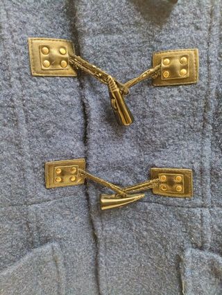 Chaquetón de 75% lana, 10% mohair y 15% poliamida, color azul, marca Rosa d'Alejandria. Talla 38. Tiene signos de uso, a destacar las trabillas de cierre presentan desgaste, pero funcionan perfectamente.