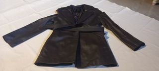 Elegante chaquetón de piel de primera calidad de tacto muy suave. Interior acolchado en la parte superior y forrado con lana en la inferior. Cierre con cremallera en perfecto estado.