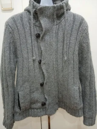 Chaquetón de lana con capucha y botones. - Diseño acolchado. - Bolsillos frontales.muy calentito .mide de hombros 52 cnt ,de sisa a sisa 60 cnts y de largo 75 cnts.en perfecto estado .lo vendo xq donde vivo no hace tanto frio.