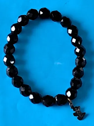 Elegante pulsera de Agatha Paris con cuentas facetadas. - Diseño con cuentas negras. - Charm colgante con forma de figura.