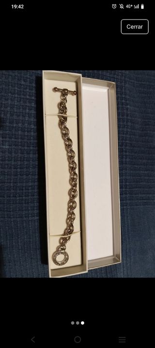 Elegante pulsera con un diseño delicado y un charm en forma de letra D. - Cadena fina. - Cierre de mosquetón. - Extensor para ajustar la medida.