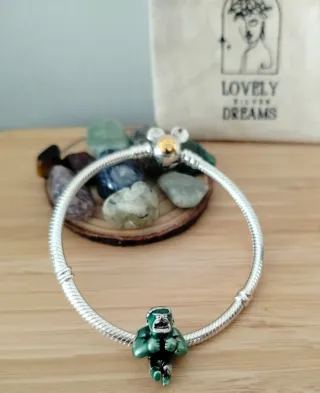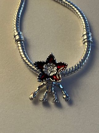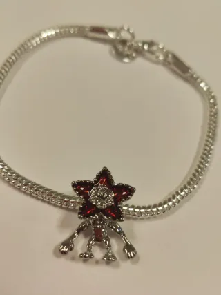 Pulsera de plata con un charm inspirado en el Demogorgon de Stranger Things. - No es pandora