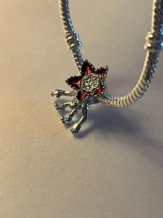Este charm tiene la forma del Demogorgon de Stranger Things. Para pulsera pandora Entrega en mano o envio - Diseño en forma de estrella. - Detalles en color rojo. - Acabado plateado.